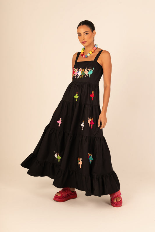 Vestido Amanda Flor Ponto Cruz - vichy preto