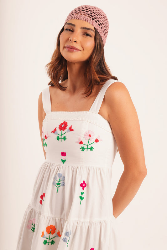 Vestido Amanda Mini Flores - branco