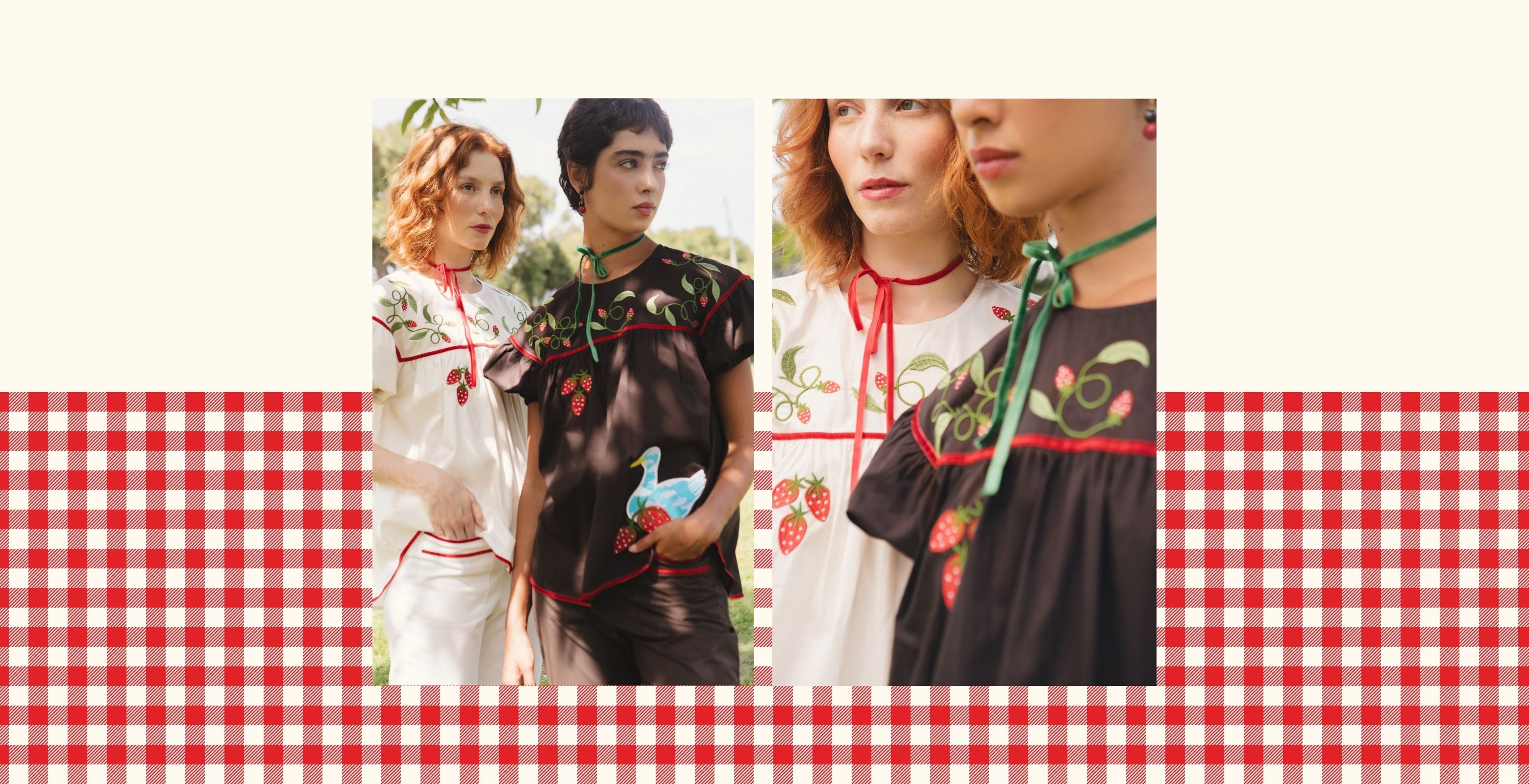 Conjunto Era Uma Vez Patinho - vichy vermelho