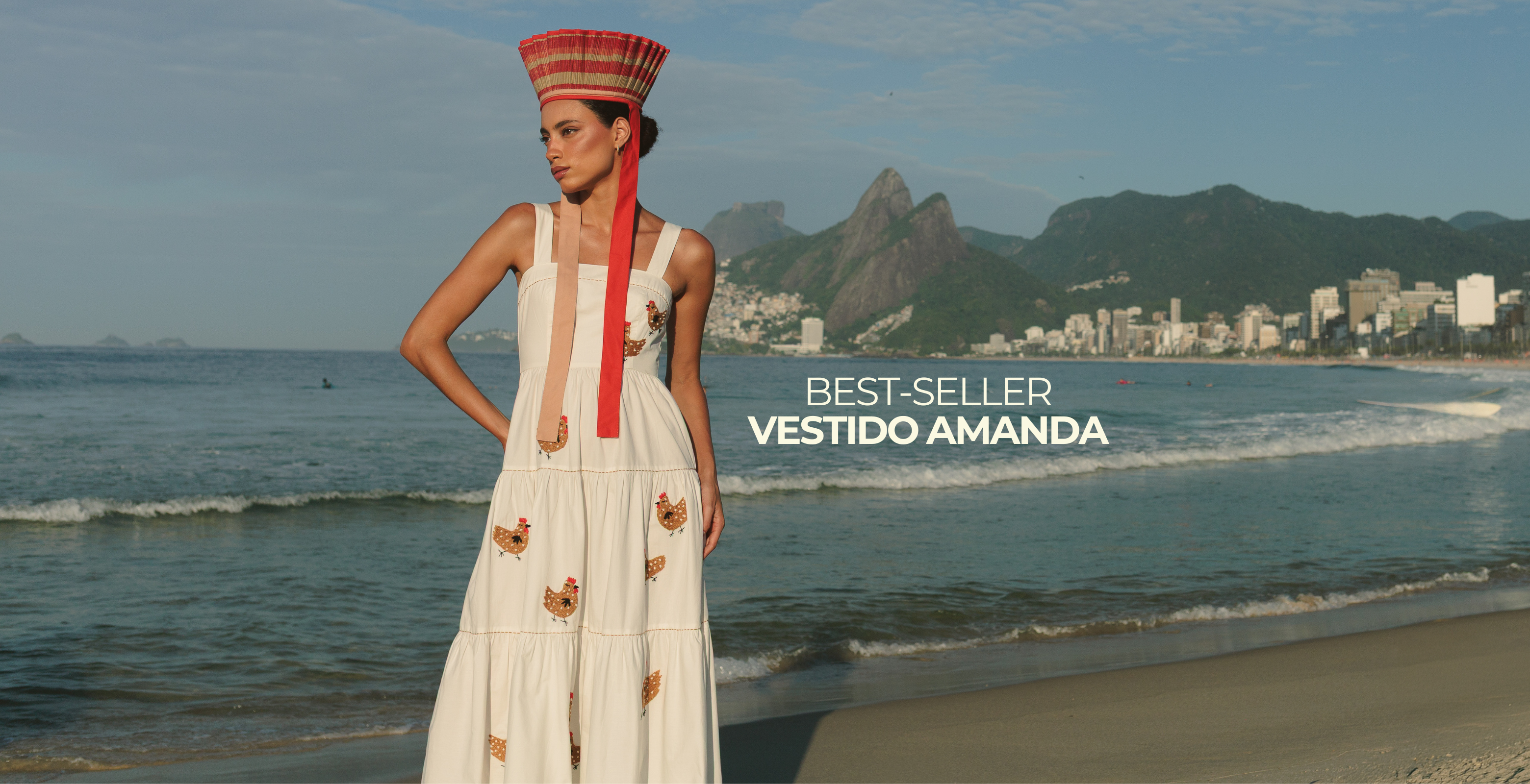 Vestido Amanda Flor Ponto Cruz - vichy preto