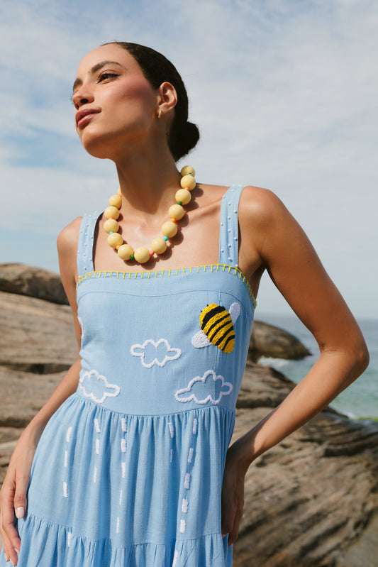 Vestido Amanda Sussurro das Abelhas - azul claro