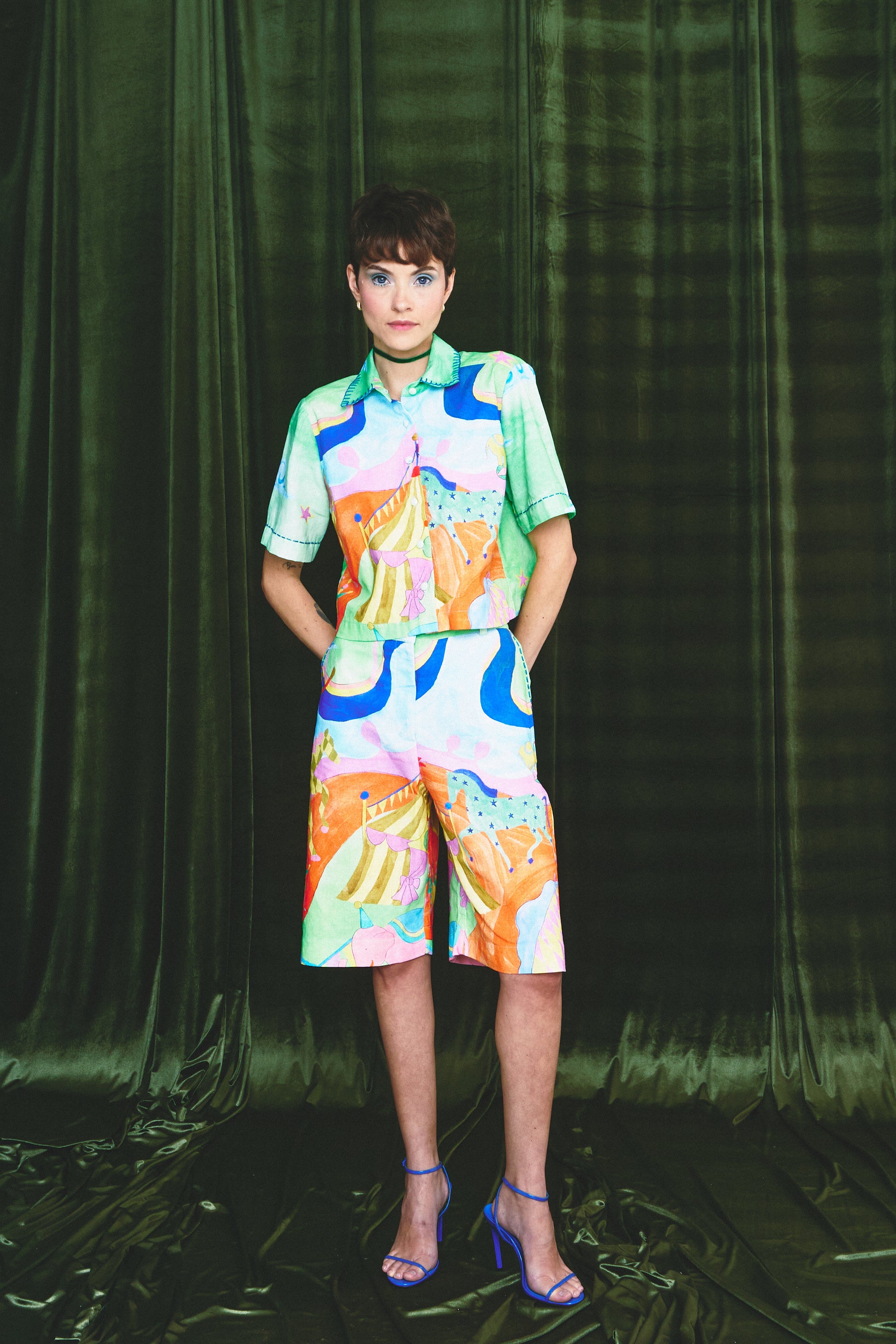 A Camisa Mistério une leveza e sofisticação. Os botões forrados do próprio tecido e os bordados à mão — com dente de cão na gola e pontinhos delicados nas mangas — evidenciam o cuidado artesanal característico da Mabô. Como cada peça é única, a estampa pode apresentar variações na sua localização, tornando cada camisa ainda mais especial.