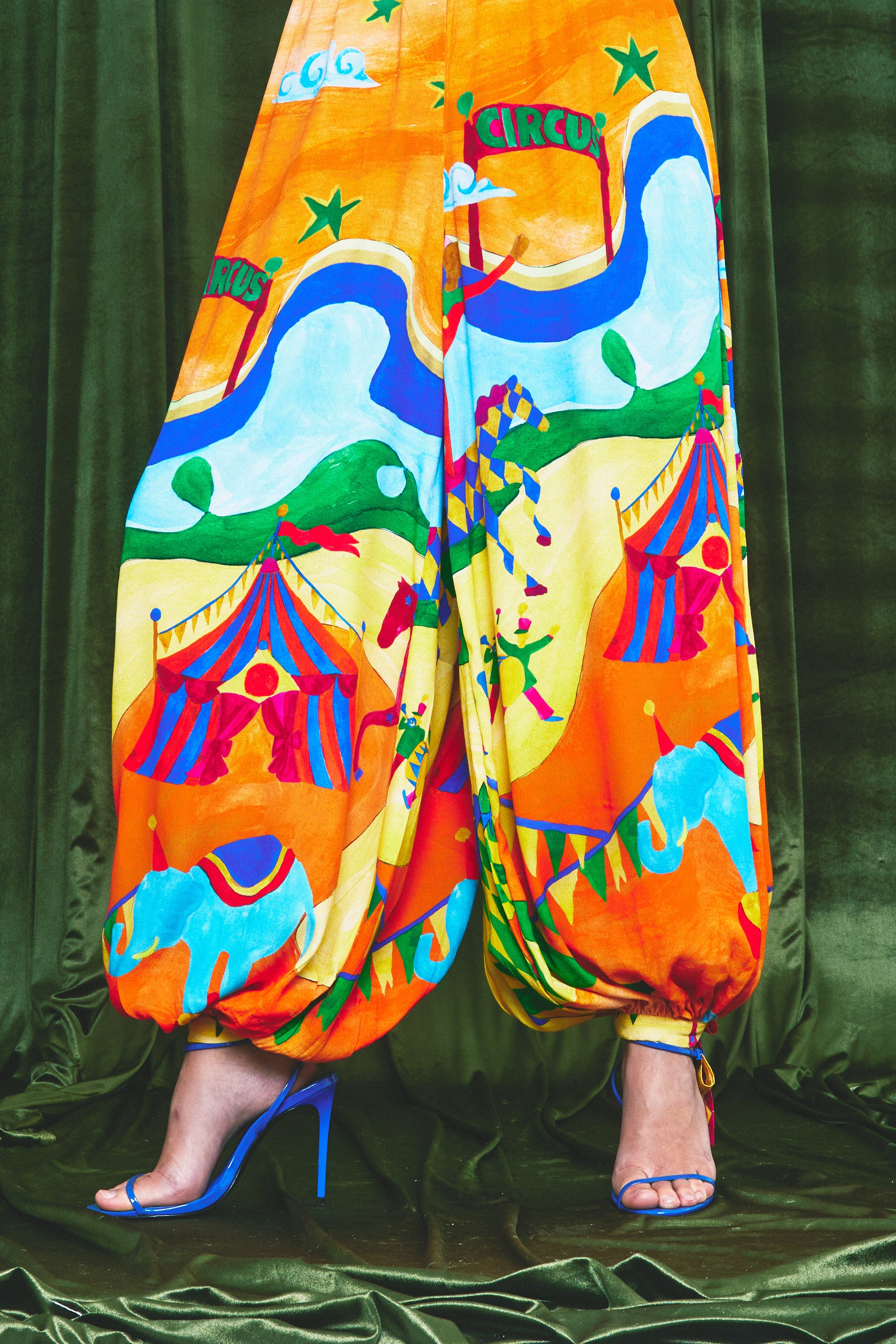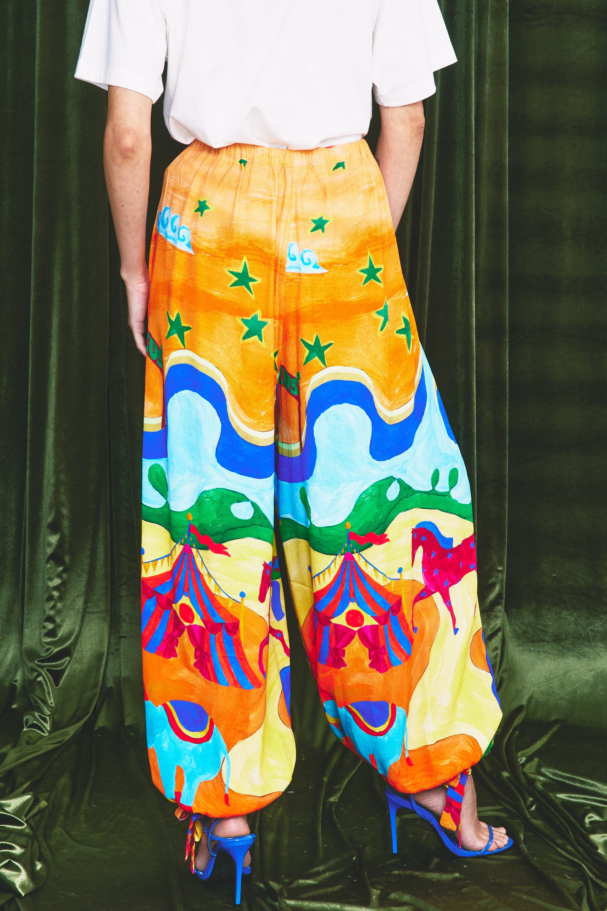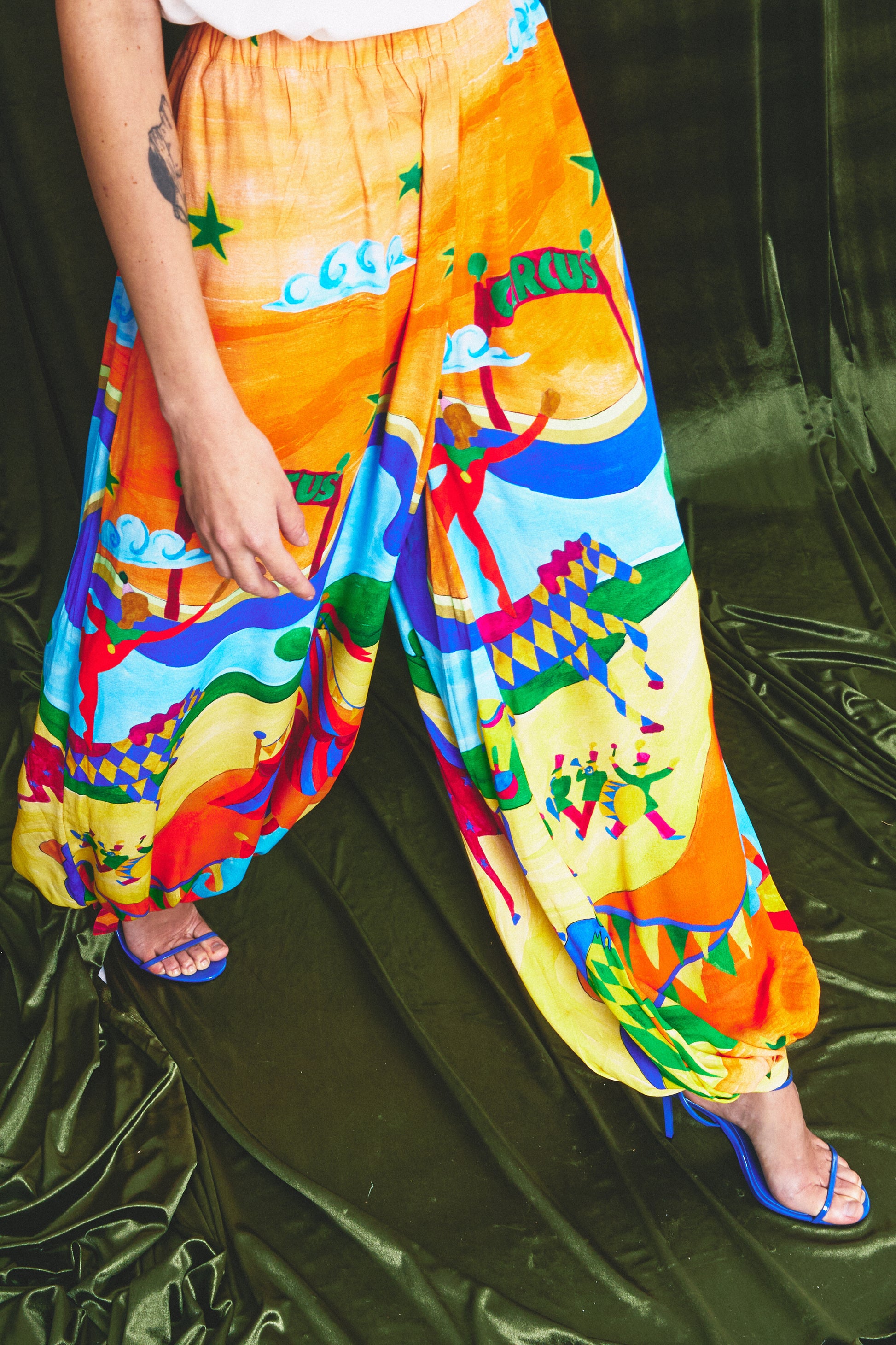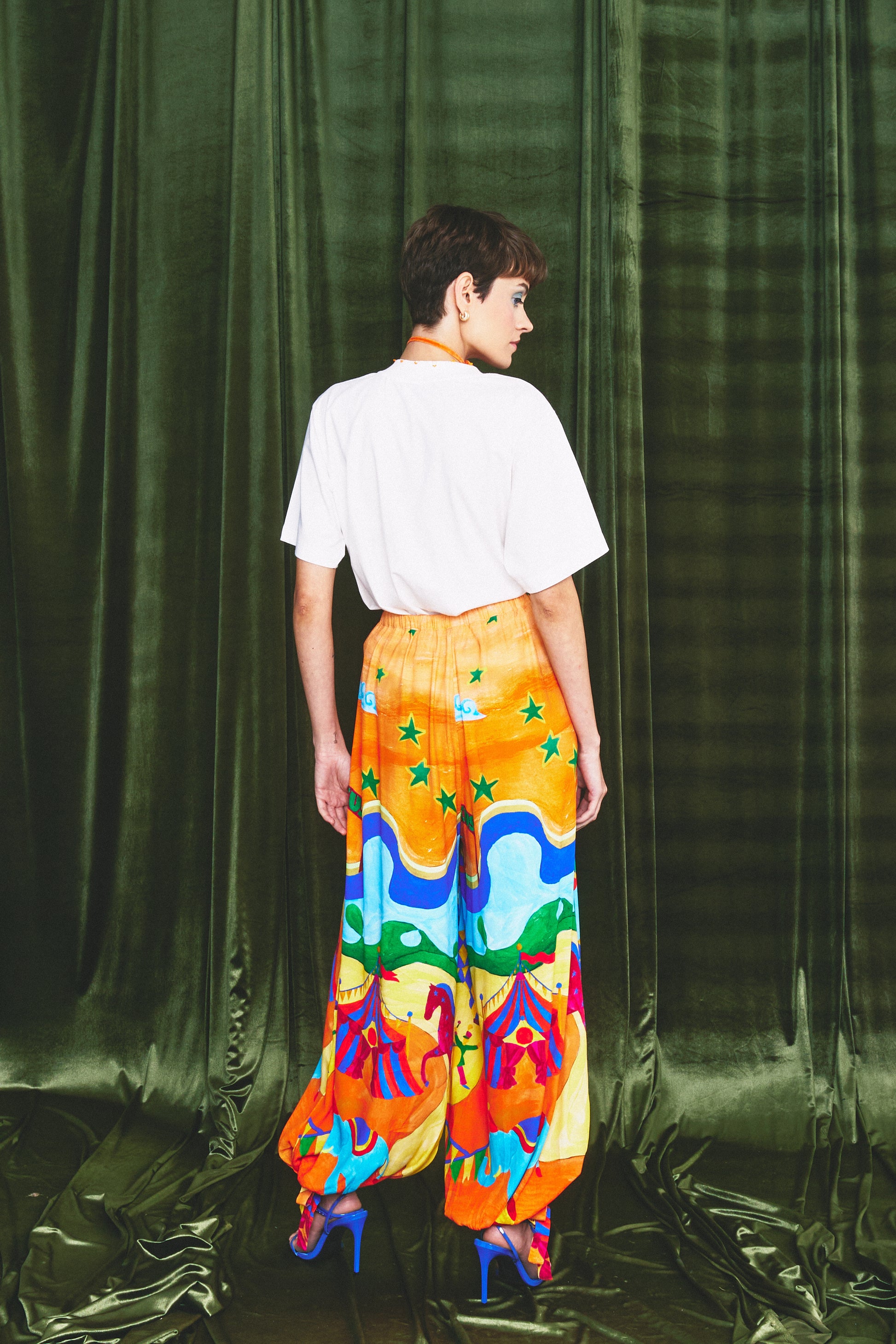 Com modelagem estilo Aladin, a Calça Fantasia combina leveza e charme. Possui amarração na barra, elástico na cintura e um shortinho interno que garante conforto e liberdade de movimento.