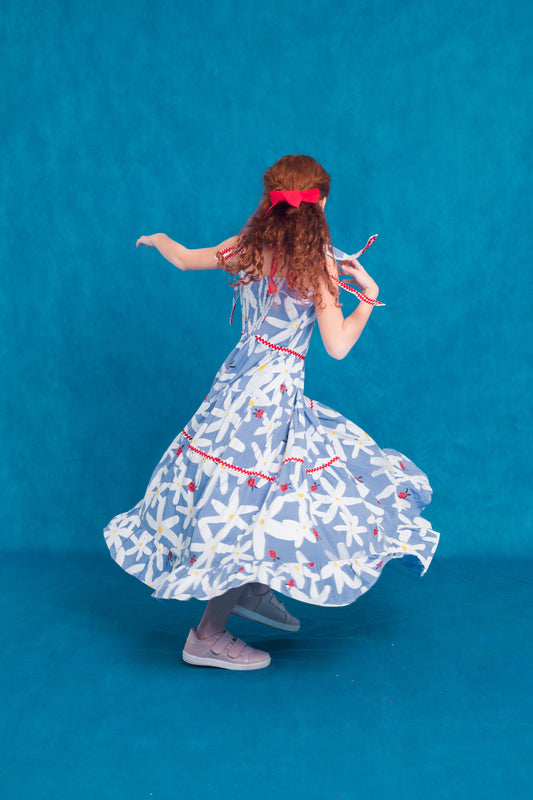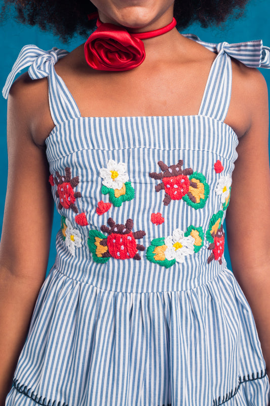 Vestido Amanda Jardim de Joaninhas Mini - listrado azul