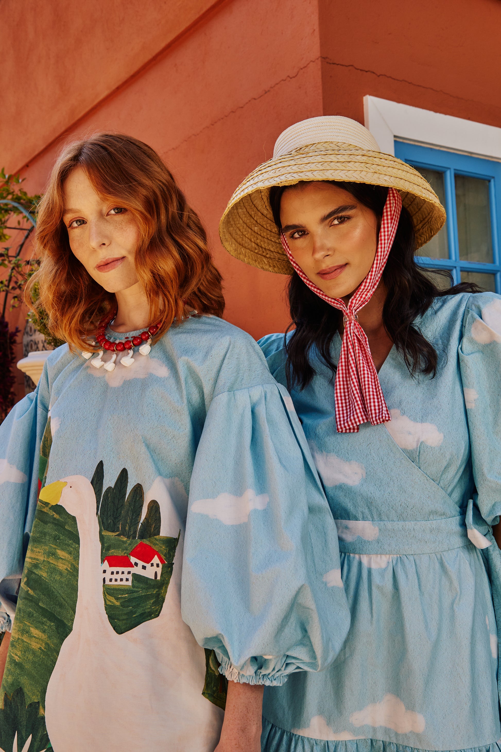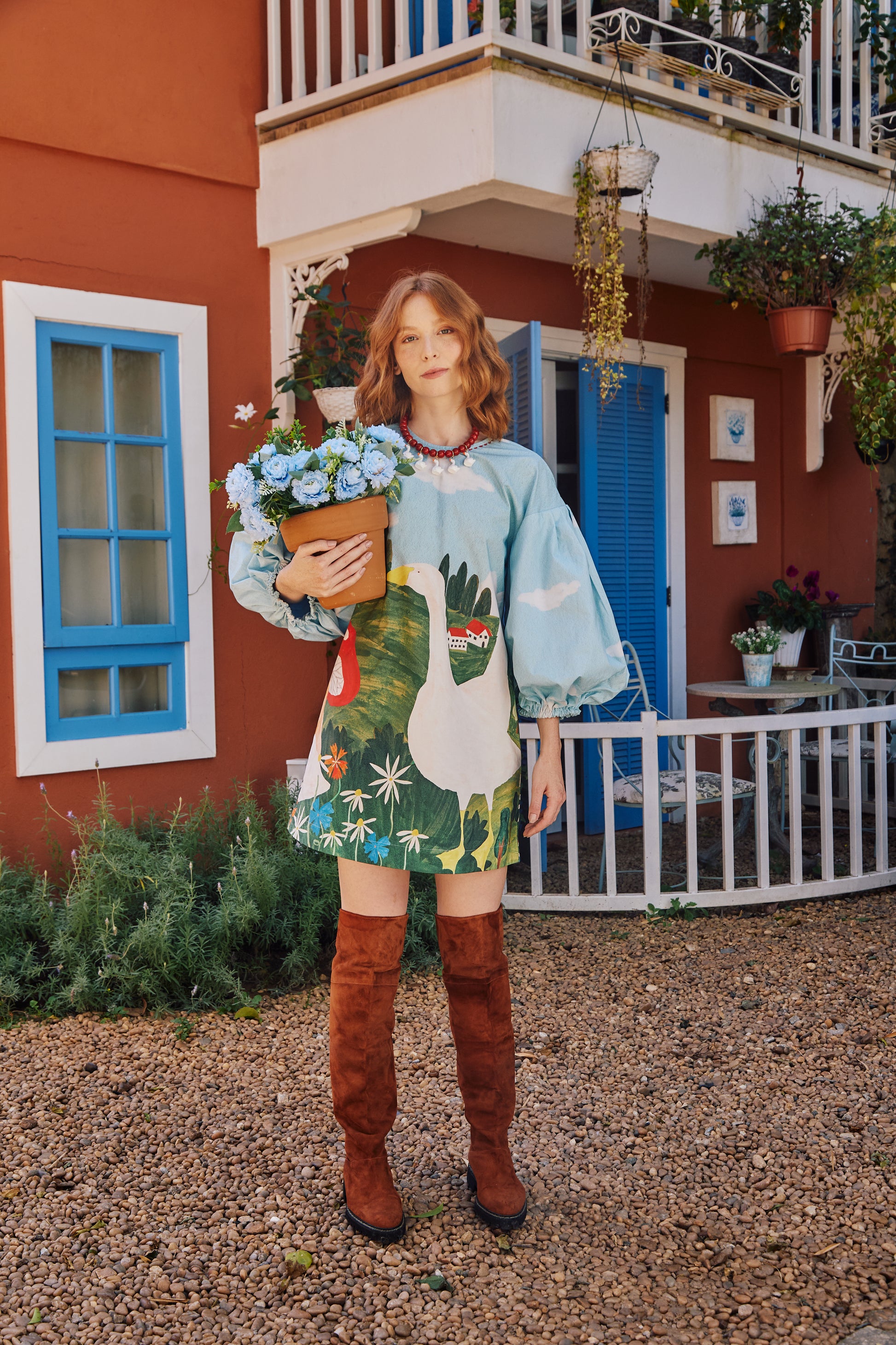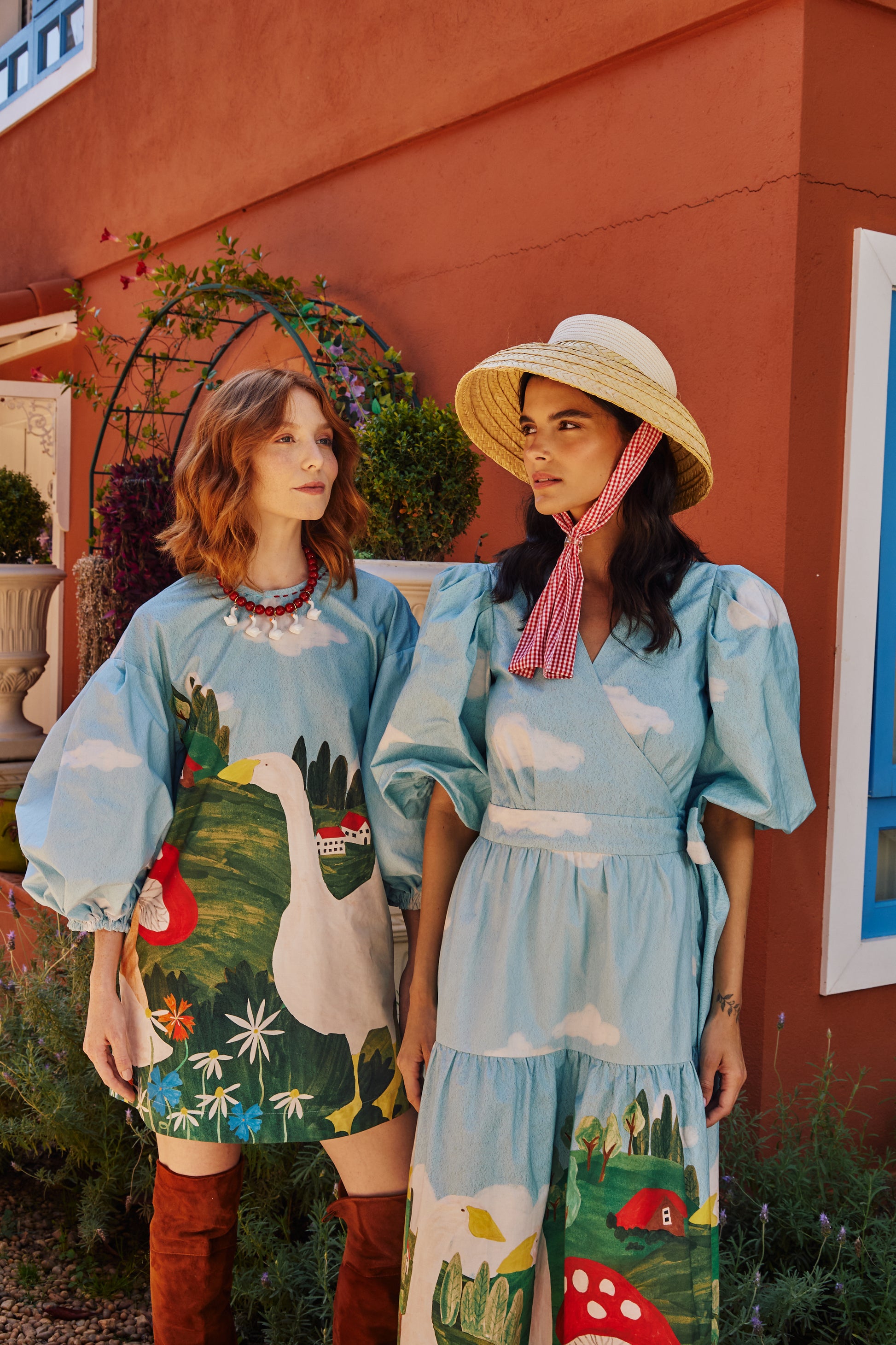 Com estampa exclusiva, o Vestido Fada Fazendinha é puro encanto e versatilidade. Moderno, pode ser usado sozinho como um vestido curtinho ou combinado com calça para composições ainda mais estilosas. Suas mangas bufantes com forro trazem volume e sofisticação, enquanto o shape em A garante leveza e movimento. O decote recebe bordados feitos à mão e, para completar, o vestido possui bolsos laterais, tornam a peça ainda mais prática.