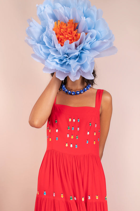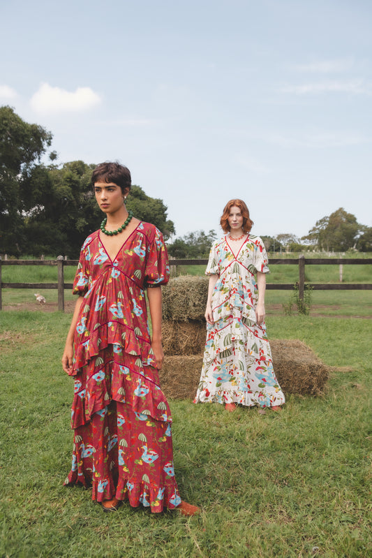 Vestido Amanda Máxi Margaridas - vichy laranja