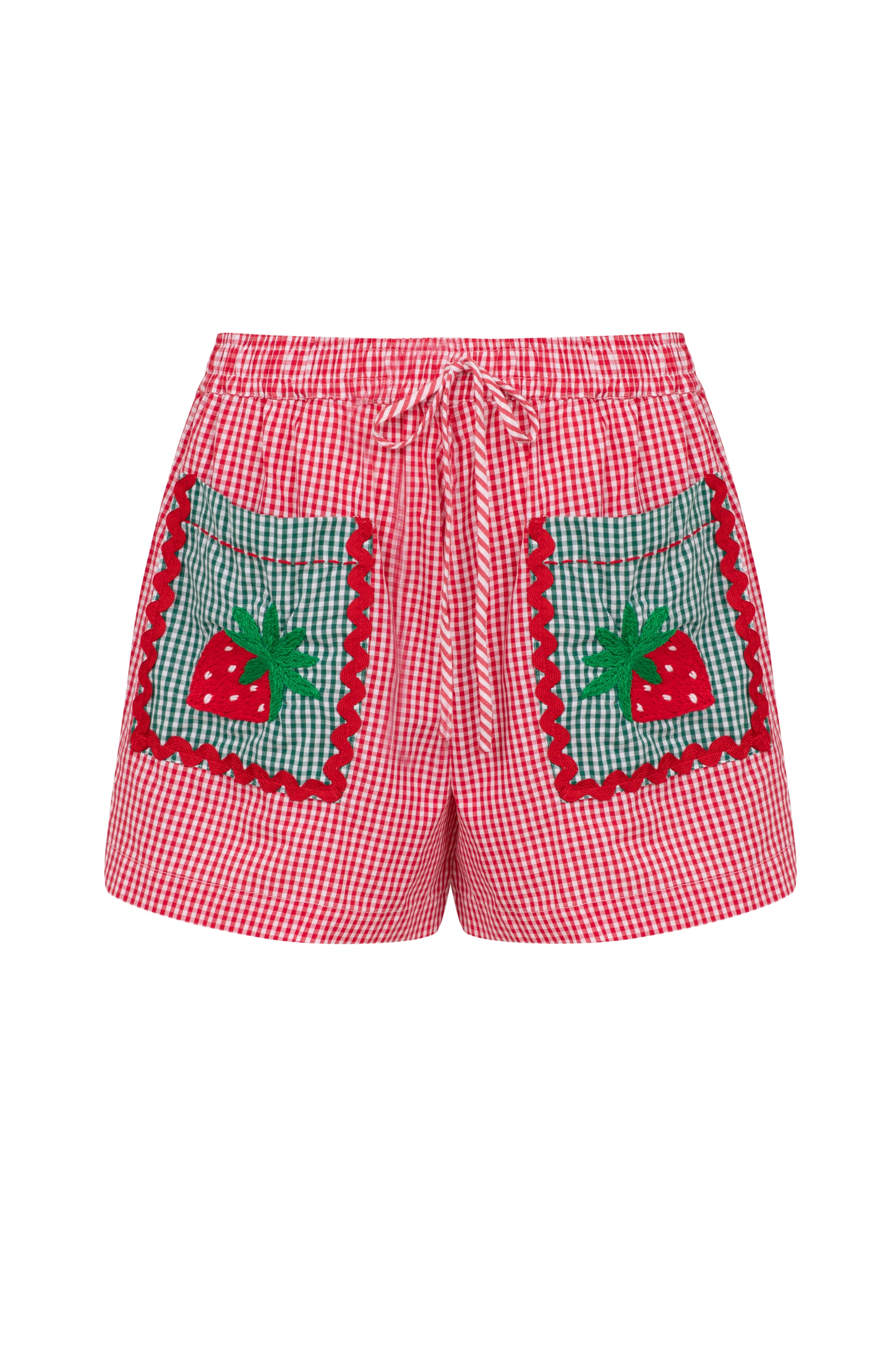 Apresentamos o Short Maria! Os bordados à mão de morangos, os pontinhos delicados e as sianinhas aplicadas fazem desta peça um verdadeiro encanto. Com cós de elástico para um ajuste perfeito e viés listrado vermelho que adiciona um charme especial, o Short Maria é ideal para quem busca leveza e estilo no dia a dia. Combine com a Blusa Maria para um look romântico e cheio de personalidade!