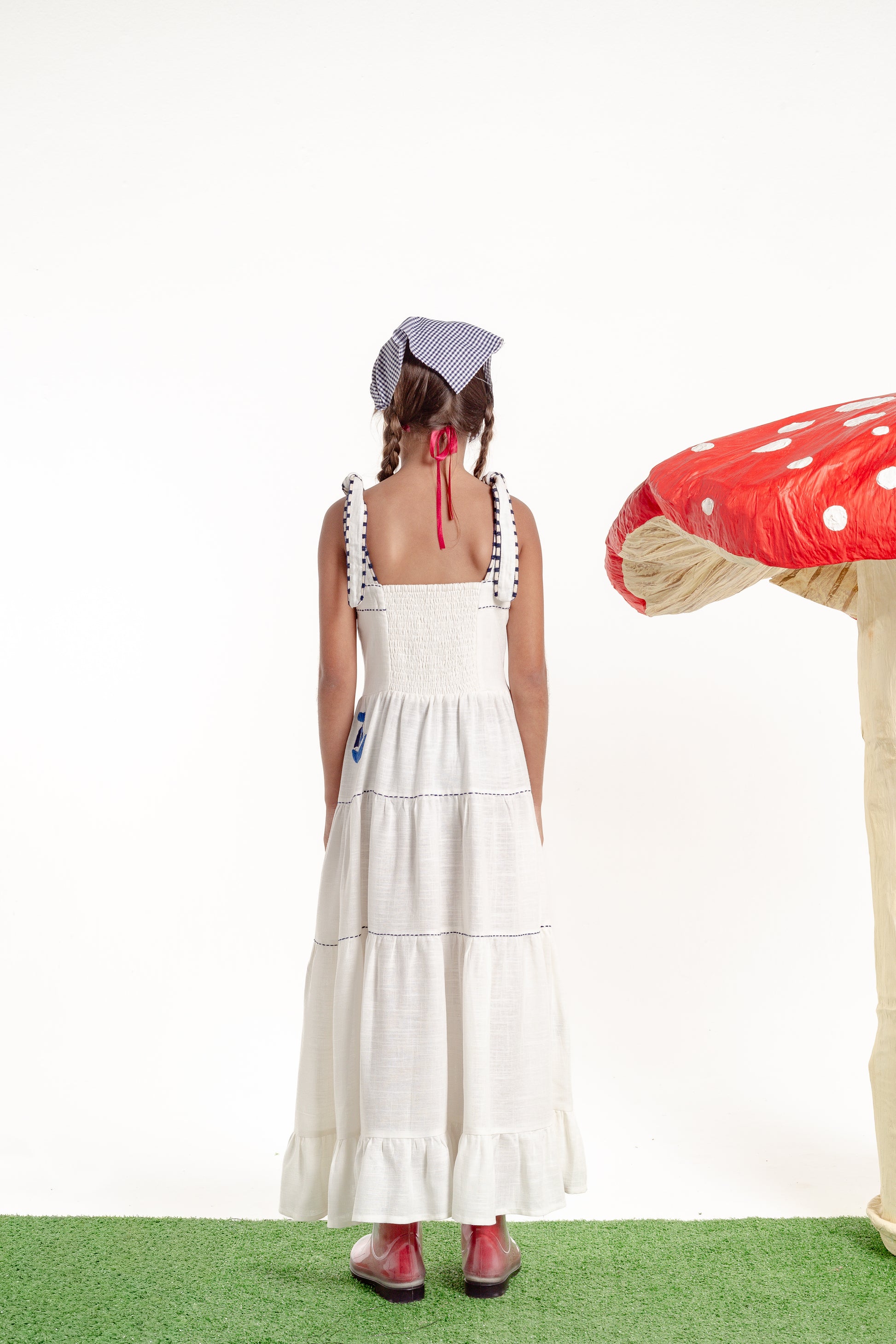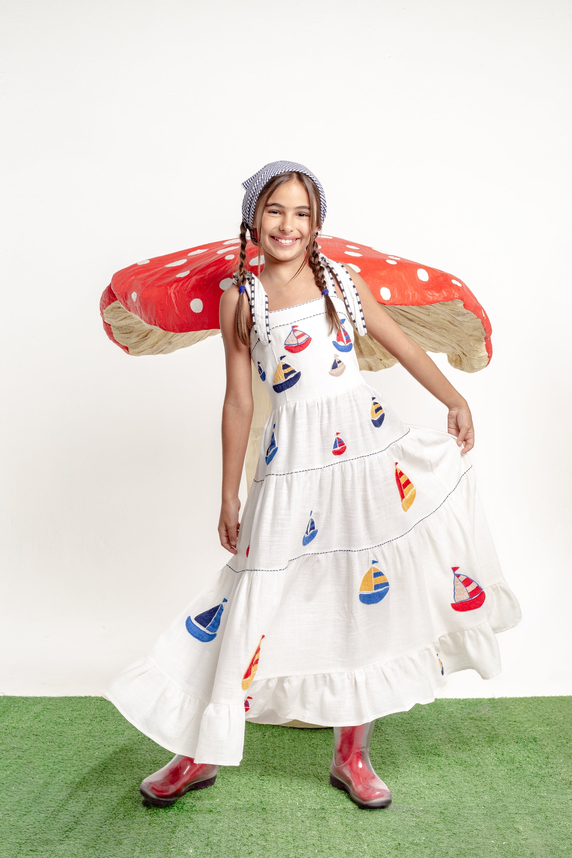 Um dos principais modelos da Mabô, o Vestido Amanda ganha agora sua versão infantil. O Amanda Barcos é uma celebração ao oceano, com bordados meticulosamente trabalhados à mão de barcos e detalhes delicados como os pontinhos feitos à mão no busto e babados. As alças recebem um aviamento especial que dá um toque de charme!