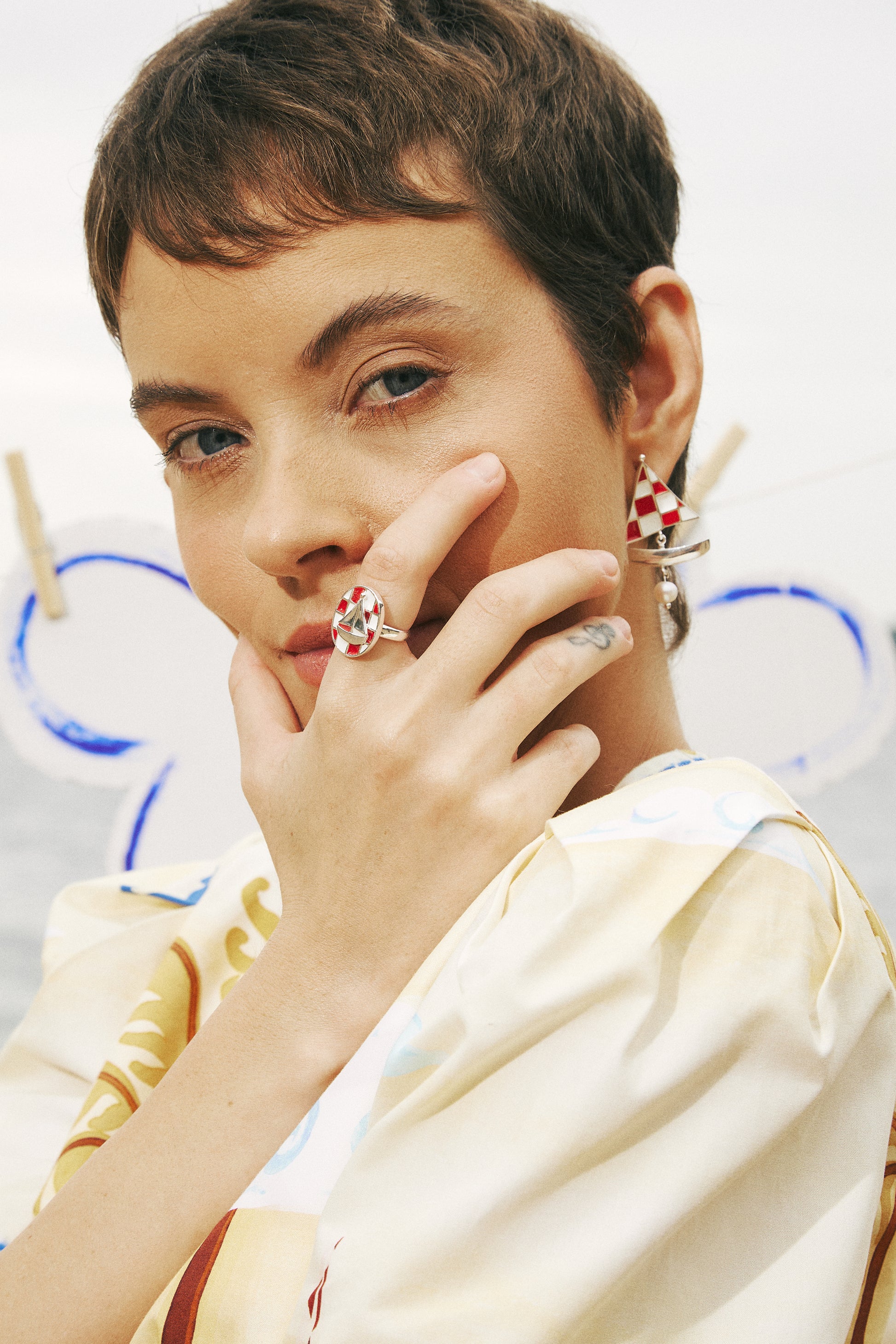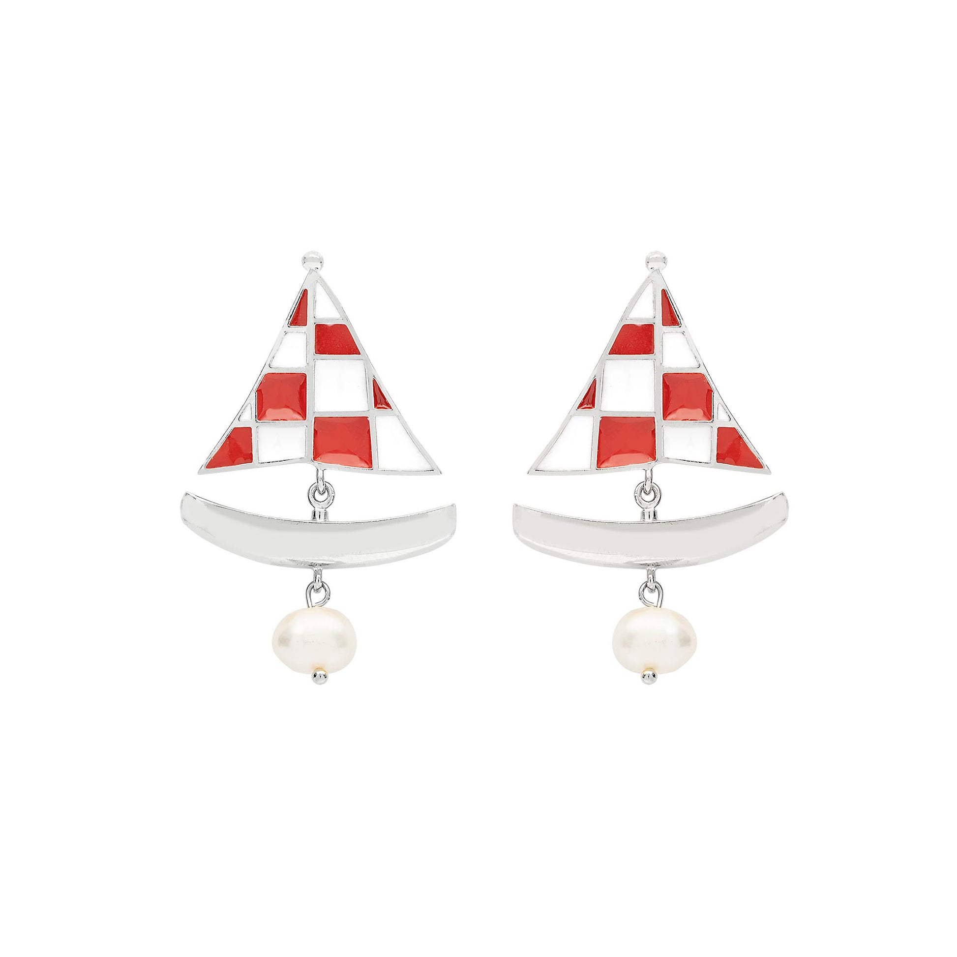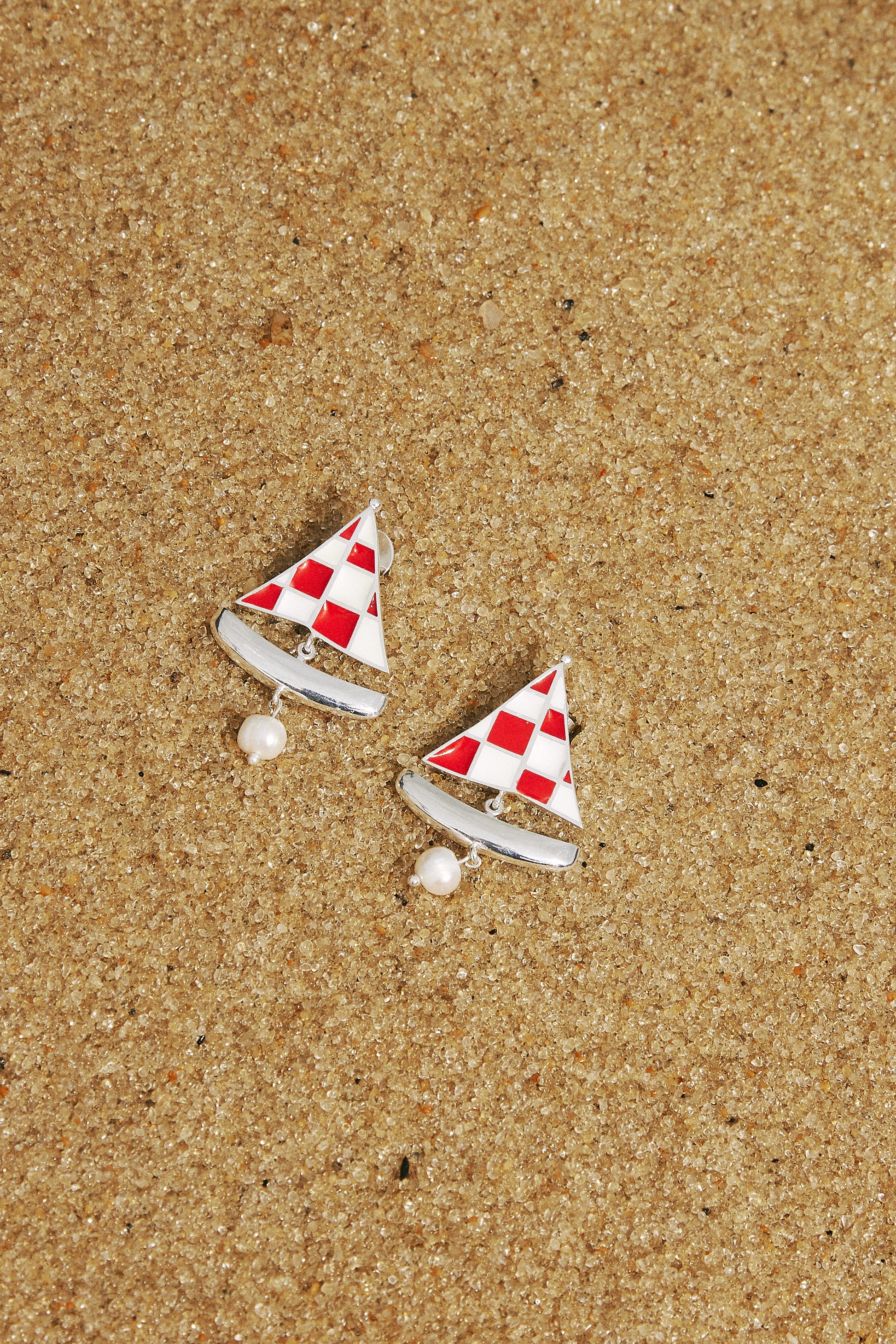 Criado em parceria com a Triana, o Brinco Veleiro une o olhar de duas marcas contadoras de histórias. Com design lúdico, traz um barco com xadrez de resina branca e vermelha feita à mão. Articulado e cheio de movimento, é finalizado com pérola barroca, trazendo um toque especial. DICA: Aposte no conjuntinho com o Anel Veleiro e garanta uma produção criativa!