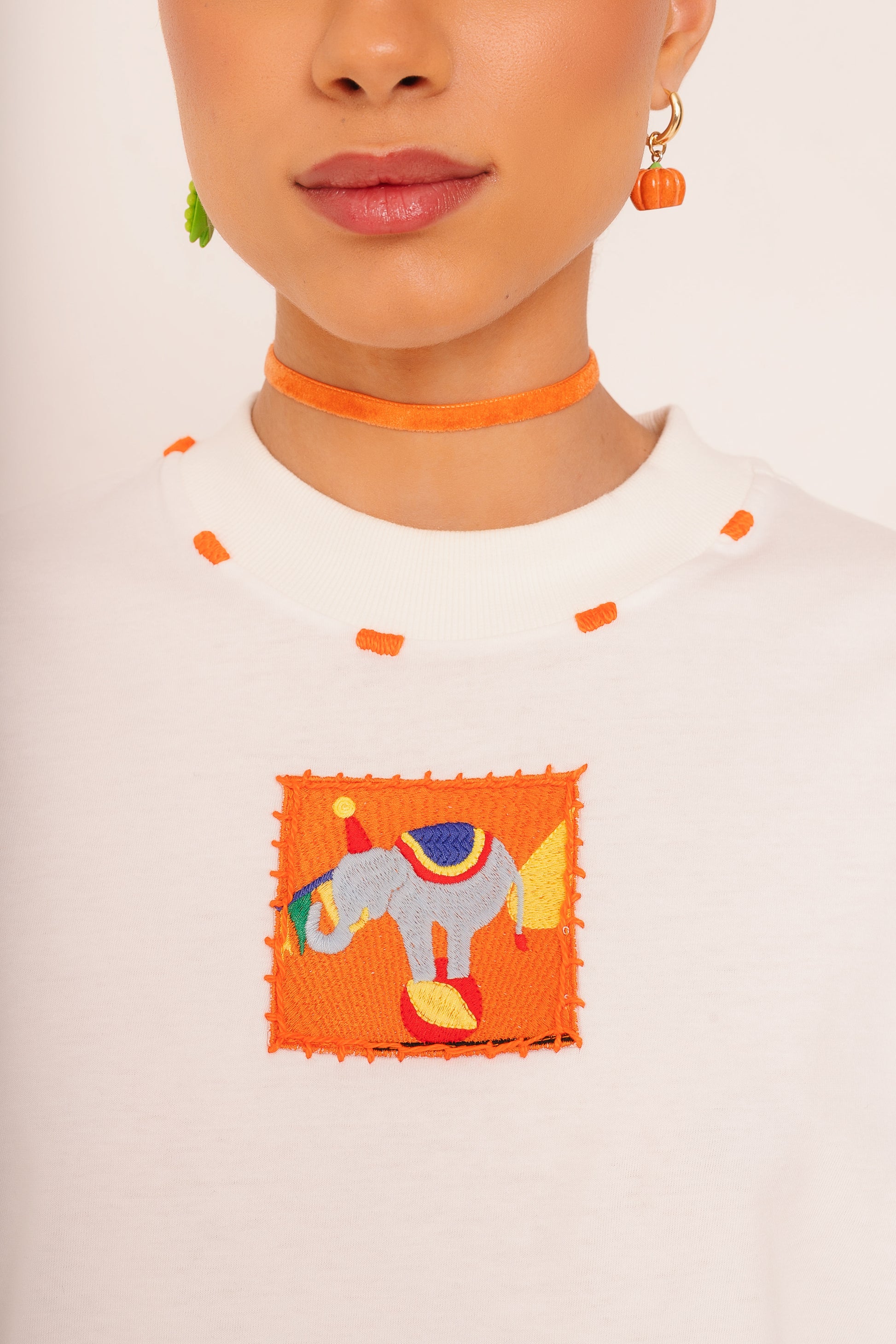 A T-Shirt Elefante une conforto e significado. O bordado à mão na gola revela o cuidado artesanal característico da Mabô, enquanto a aplicação do patch de elefante bordado traz um toque lúdico e afetivo à peça. Uma t-shirt especial, feita para acompanhar todos os momentos.