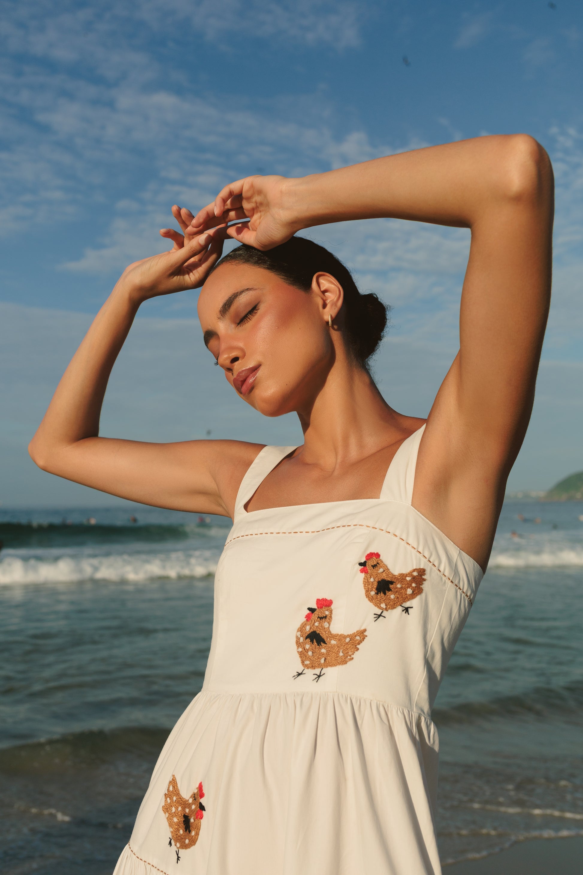 Um dos principais modelos da Mabô, o Vestido Amanda conquista quem ama combinar beleza e conforto. Aqui, as Galinhas D'Angola nascem, cada uma, com mais de 8 horas de trabalho das nossas bordadeiras e preenchem essa peça com muita beleza e delicadeza!