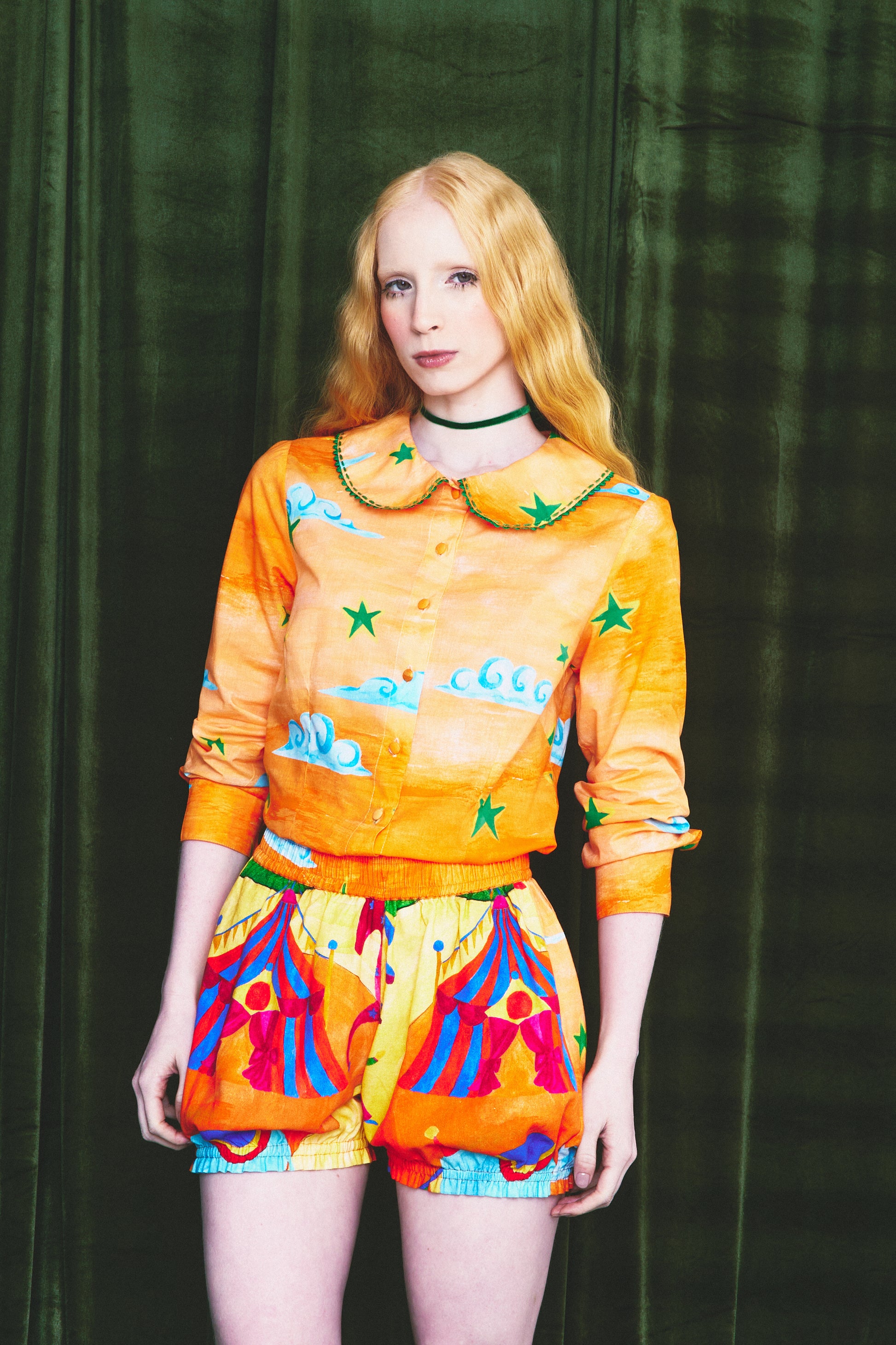 A estampa Circo foi desenvolvida a partir de uma pintura à mão em aquarela, portanto, pode apresentar variações na sua localização, tornando cada peça única — um charme a mais que reforça o caráter artesanal da Mabô.
